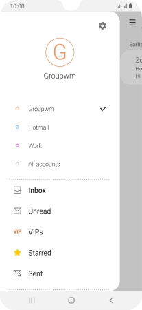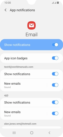 Press the indicator next to "Show notifications" below the required email account to turn the function on or off.