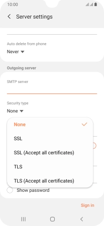 11. Enter outgoing server