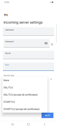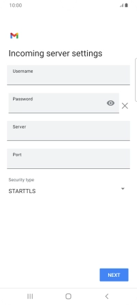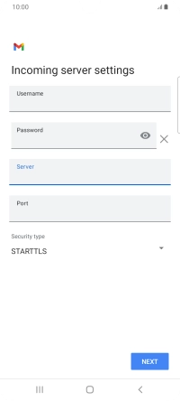 Press the field below "Server" and key in the name of your email provider's incoming server.