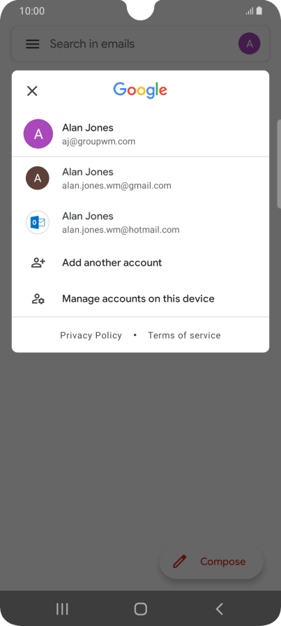 Press the required email account.