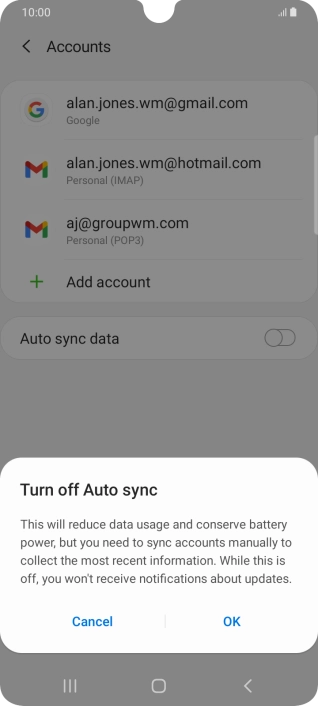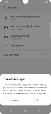 Press the indicator next to "Auto sync data" to turn the function on or off.