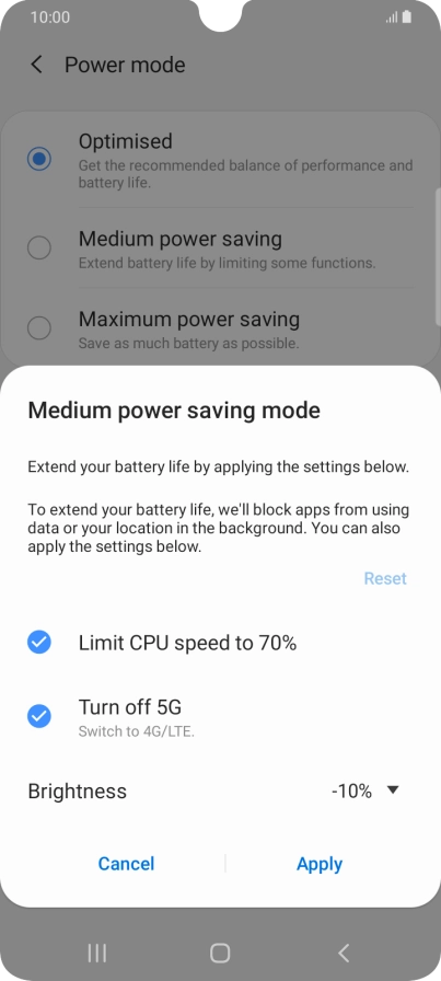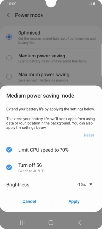 Press the required power saver mode.
