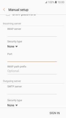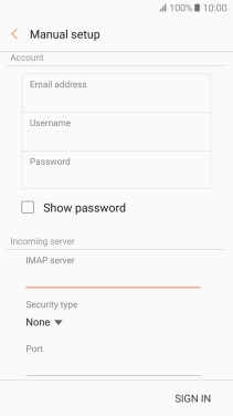 Press the field below "IMAP server" and key in the name of your email provider's incoming server.