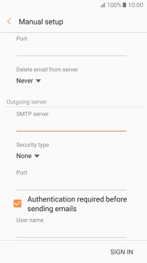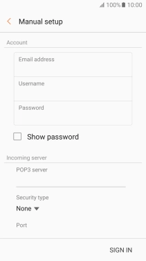 If this screen is displayed, you email account has been recognised and set up automatically. Follow the instructions on the screen to key in more information and finish setting up your phone.