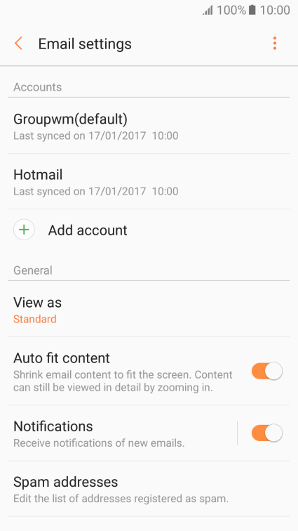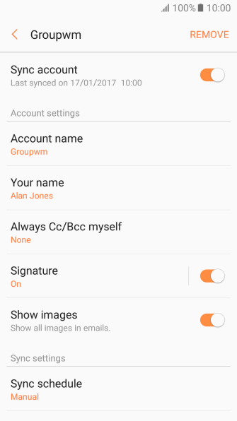 Press When deleted from Inbox to delete email messages on the server when you delete them on your phone.