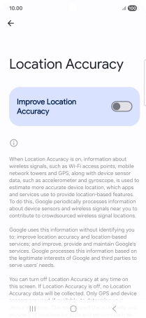 If you press the indicator next to "Improve Location Accuracy" to turn off the function, your phone can find your exact position using the GPS satellites but it may take longer as there is no access to supplementary information from the mobile network or nearby Wi-Fi networks.