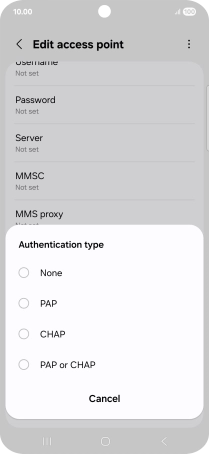 7. Enter APN type