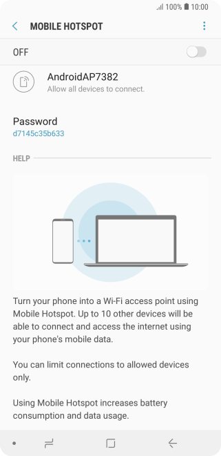 Key in the password for your Wi-Fi hotspot and establish the connection.