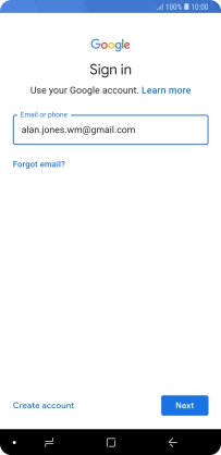 If you don't have a Google account, press Create account and follow the instructions on the screen to create an account.