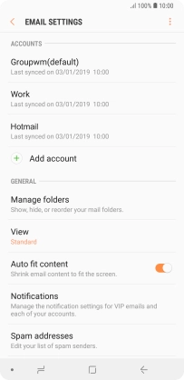 Press the indicator next to the required email account to turn the function on or off.