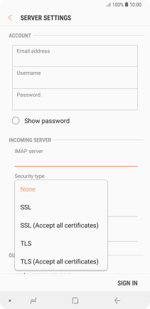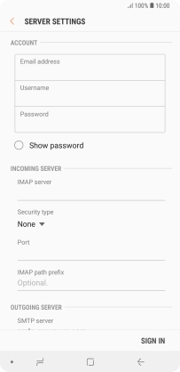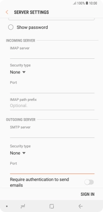 Press the field below "IMAP server" and key in the name of your email provider's incoming server.