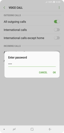 Key in your barring password and press OK. The default barring password is 0000.