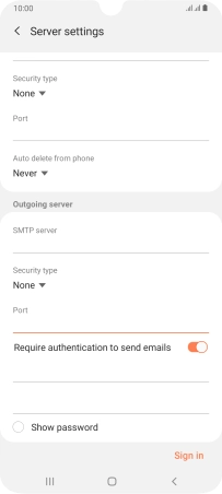 Press Password and key in the password for your email account.