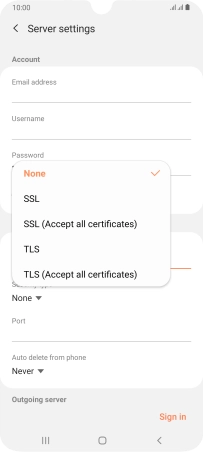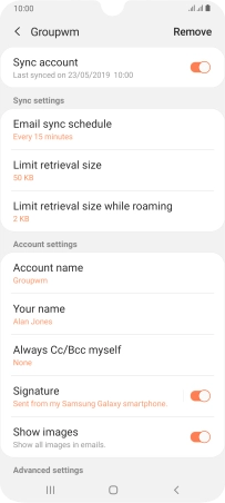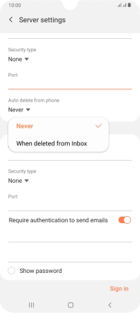Press When deleted from Inbox to delete email messages on the server when you delete them on your phone.