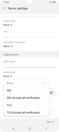 11. Enter outgoing server