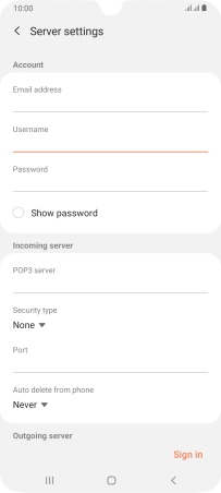 Press the field below "POP3 server" and key in the name of your email provider's incoming server.