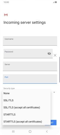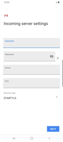 Press the field below "Server" and key in the name of your email provider's incoming server.