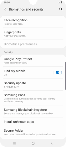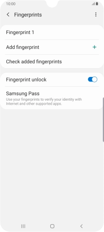 Press the indicator next to "Fingerprint unlock" to turn the function on or off.