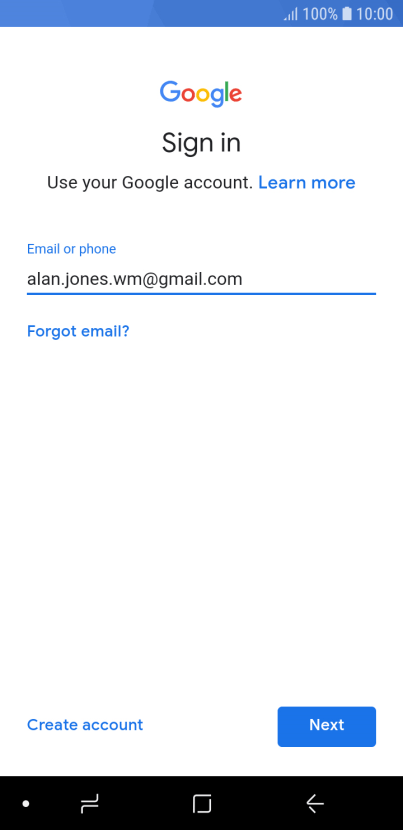 If you don't have a Google account, press Create account and follow the instructions on the screen to create an account.