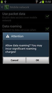 Press Data roaming to turn the function on or off.