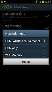 Press GSM/WCDMA (Auto mode), GSM only or WCDMA only.