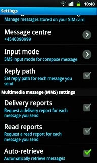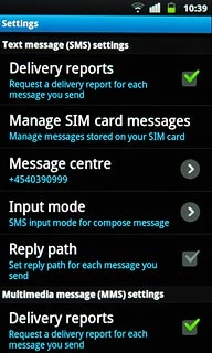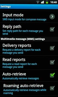 Press Delivery reports below Multimedia message (MMS) settings to turn the function on or off.