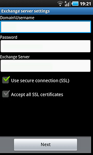 Press the field below Exchange Server and key in the server address.