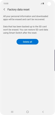 Press Delete all. Wait a moment while the factory default settings are restored. Follow the instructions on the screen to set up your phone and prepare it for use.