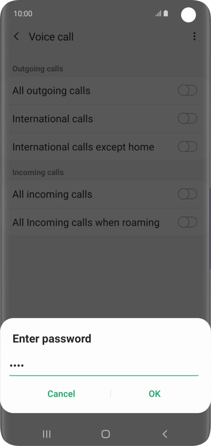 Key in your barring password and press OK. The default barring password is 0000.