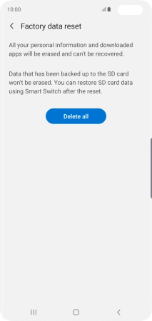 Press Delete all. Wait a moment while the factory default settings are restored. Follow the instructions on the screen to set up your phone and prepare it for use.