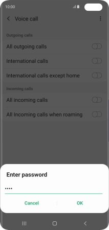 Key in your barring password and press OK. The default barring password is 0000.