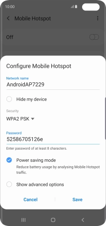 Press WPA2 PSK to password protect your Wi-Fi hotspot.