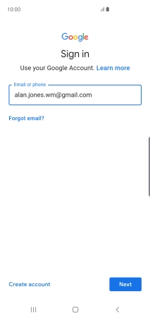 If you don't have a Google account, press Create account and follow the instructions on the screen to create an account.