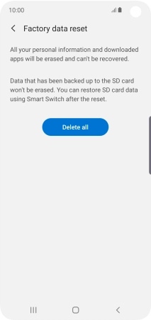 Press Delete all. Wait a moment while the factory default settings are restored. Follow the instructions on the screen to set up your phone and prepare it for use.