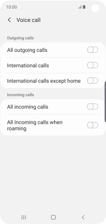 Press the indicator next to the required barring type to turn the function on or off.