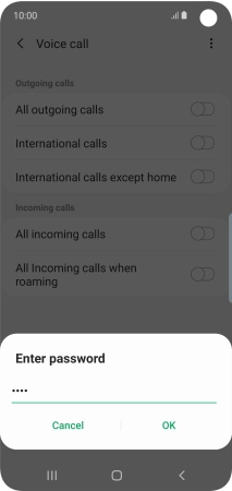 Key in your barring password and press OK. The default barring password is 0000.