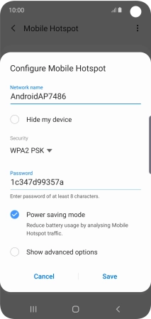Press WPA2 PSK to password protect your Wi-Fi hotspot.