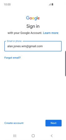 If you don't have a Google account, press Create account and follow the instructions on the screen to create an account.