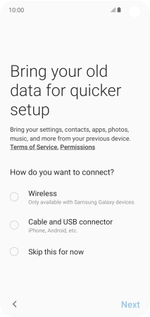 Press the required transfer method and follow the instructions on the screen to transfer content from another phone.