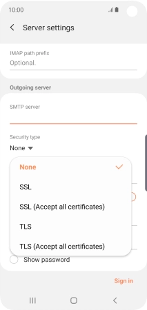 10. Enter outgoing server
