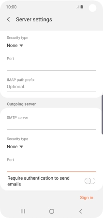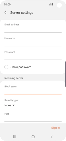 Press the field below "IMAP server" and key in the name of your email provider's incoming server.