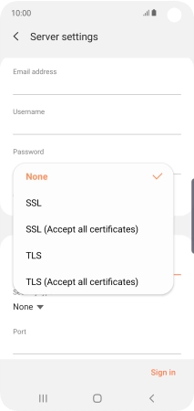 Press Password and key in the password for your email account.