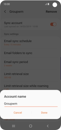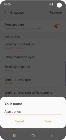 Key in the required name for the email account and press Done.