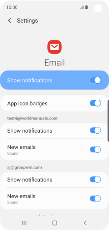 Press the indicator next to "Show notifications" below the required email account to turn the function on or off.