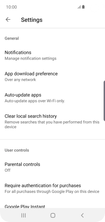 To turn on automatic update of apps using Wi-Fi, press Over Wi-Fi only.