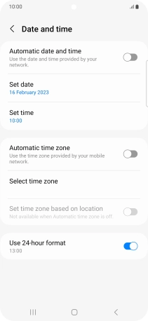 Press the indicator next to "Automatic date and time" to turn on the function.