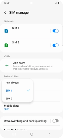 Press the required SIM.