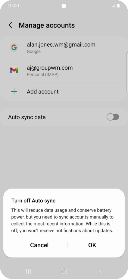 Press the indicator next to "Auto sync data" to turn the function on or off.