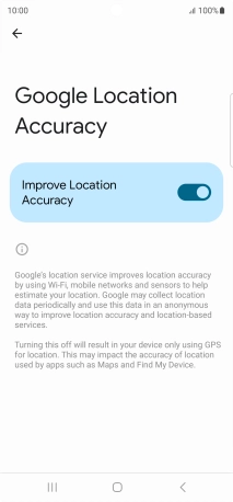 If you press the indicator next to "Improve Location Accuracy" to turn off the function, your phone can find your exact position using the GPS satellites but it may take longer as there is no access to supplementary information from the mobile network or nearby Wi-Fi networks.
