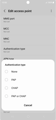 7. Enter APN type